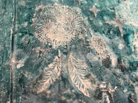 I had bought the Toadstool Town stamp set early on in December and I just had to use them. So I used all but 2 of the stamps on this page. I didn't know what the title was or where it was going until towards the end when I added the lone bird without wings on the mushroom, then it came to me! However, this page took me 4 1/2 hours to complete!